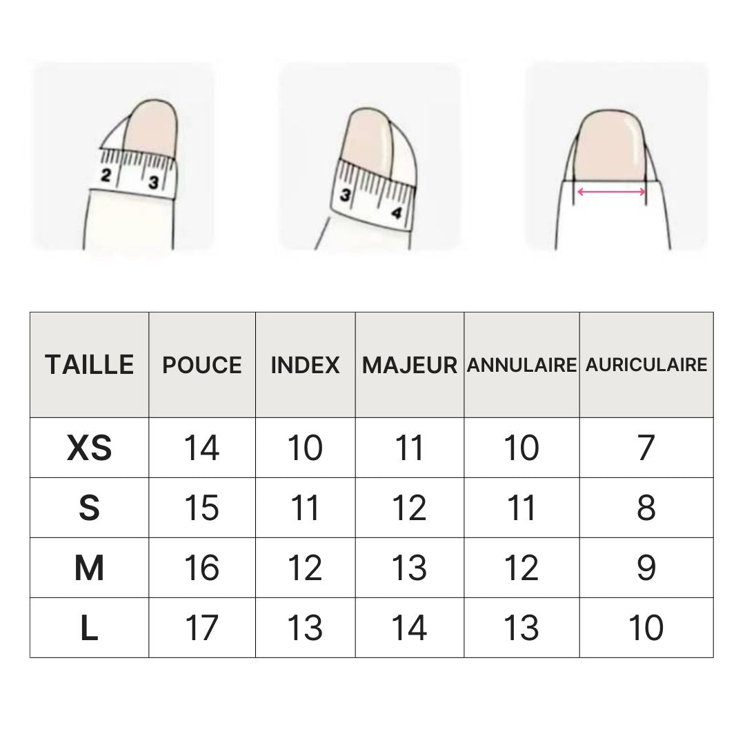 Chaque kit comprend tout le nécessaire pour une pose simple et rapide, avec des capsules de toutes tailles pour s’adapter parfaitement à tes ongles.