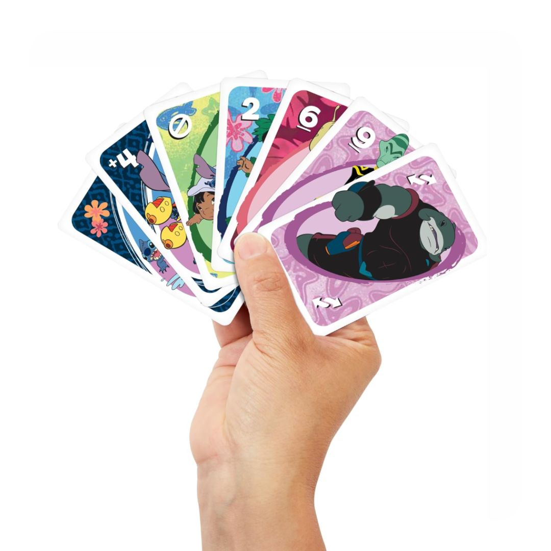 Le UNO Stitch revisite le jeu classique avec des illustrations adorables de Lilo, Stitch et leurs amis, pour des parties encore plus fun en famille ou entre amis.