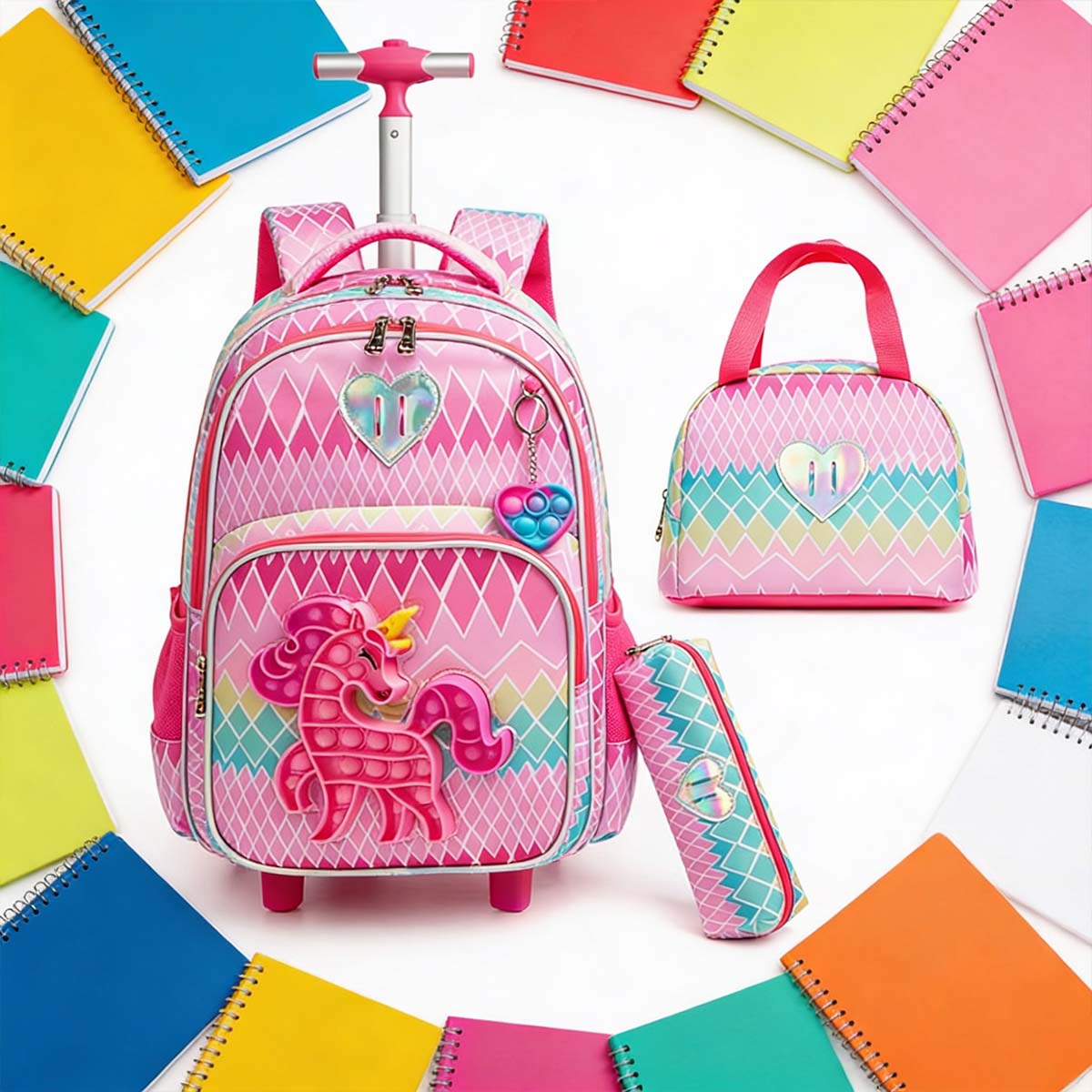 Ce cartable licorne à roulettes combine un design pastel joyeux avec une vraie fonctionnalité au quotidien. Grâce au système trolley, l’enfant peut tirer son cartable lorsqu’il est chargé et le porter sur le dos quand c’est nécessaire.