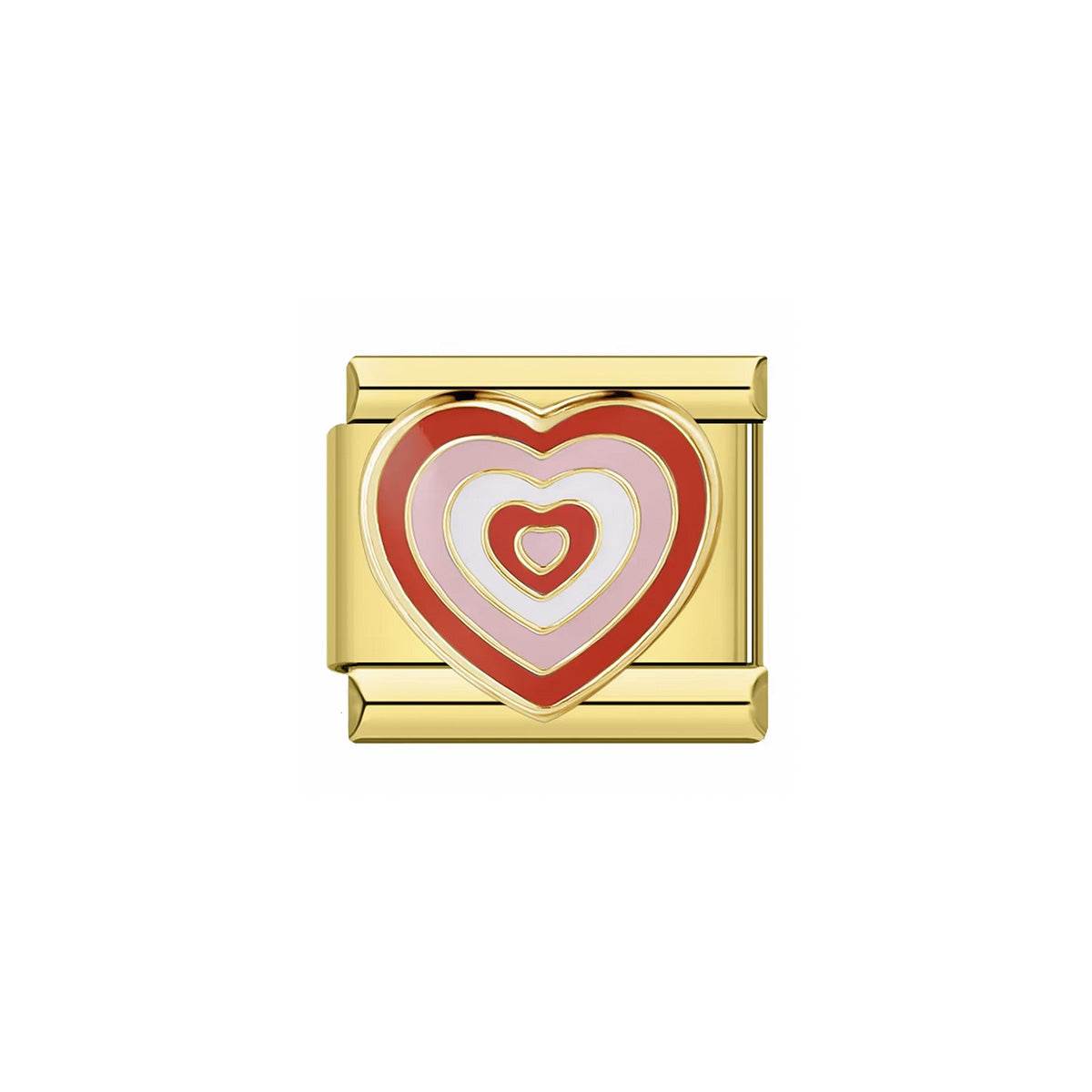 Inspiré des vibes « coquette aesthetic », ce maillon doré met en valeur un cœur multicolore (rose, rouge, blanc) qui attire tous les regards.
