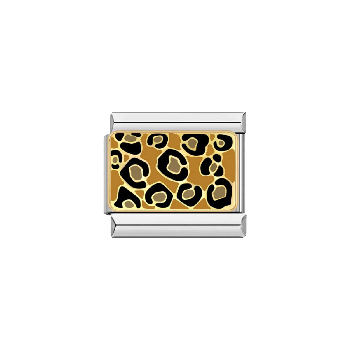 Affirme ton côté sauvage avec Leo Wild, le charm à imprimé léopard sur fond doré, encadré d’un élégant contour argenté 🐆✨