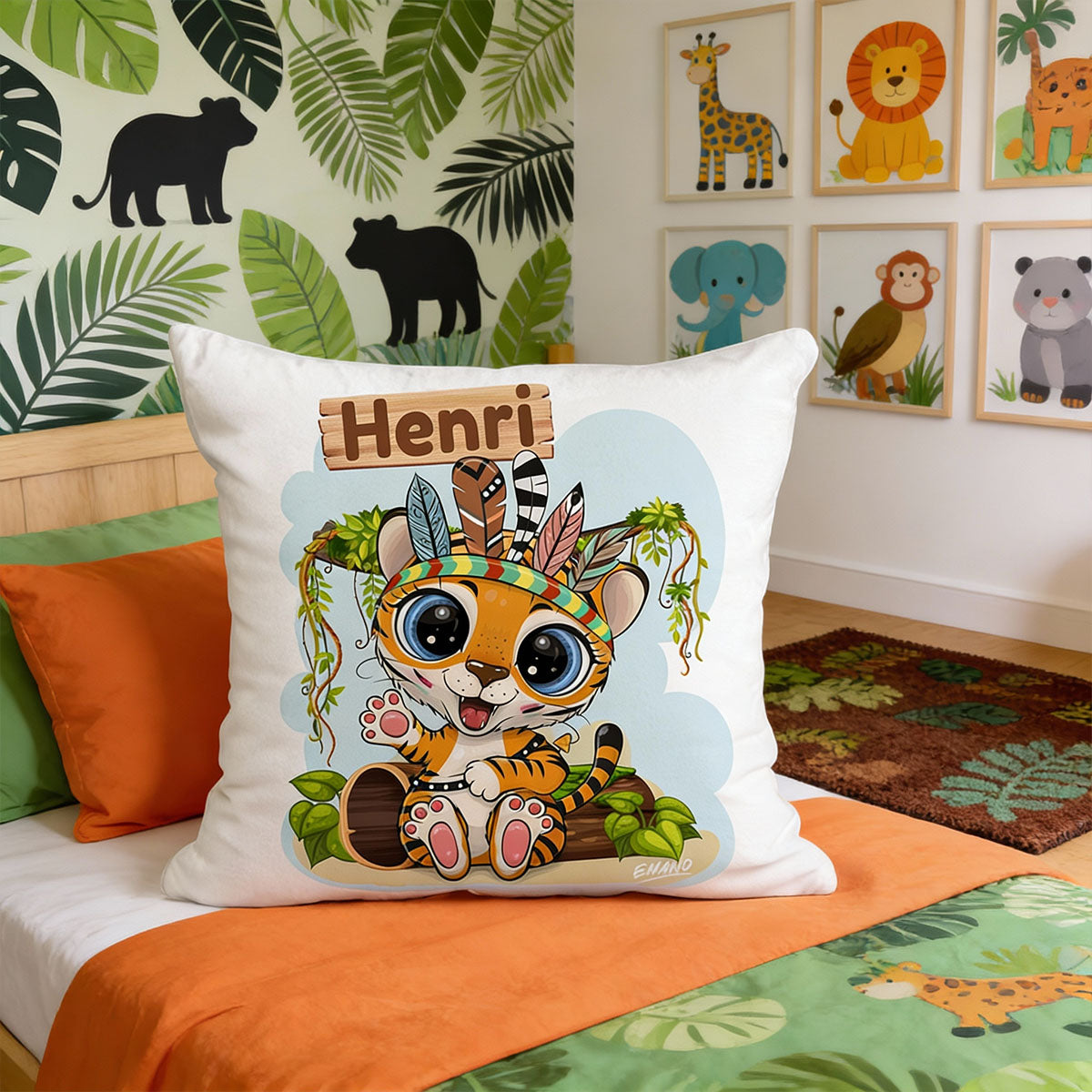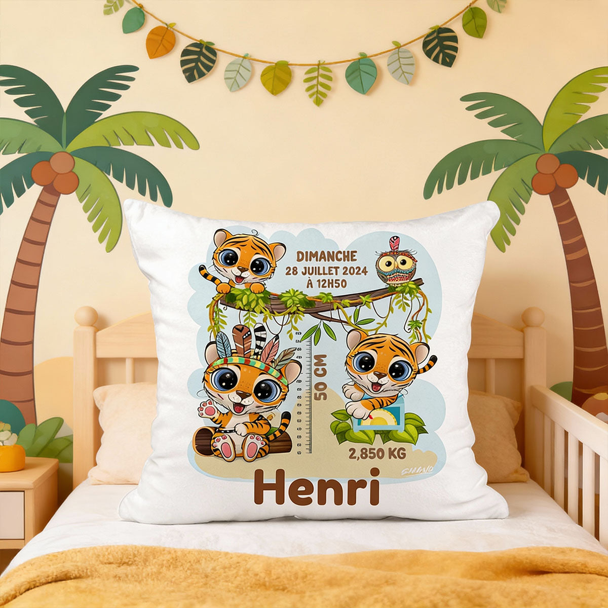 Le coussin de naissance Timo le Tigre est une création EMANO imaginée pour les bébés pleins de vie, de douceur et de curiosité.