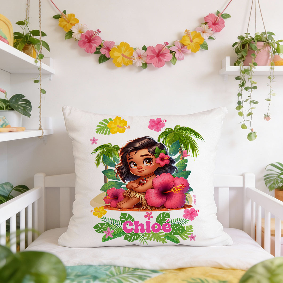 Un coussin de naissance personnalisé au style tropical, inspiré de l’univers Vahiné 🌴